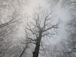 Es geht durch den Wald, in dem es durch den Nebel sehr ruhig ist und ich nichteinmal Vögel oder andere Tiere höre.